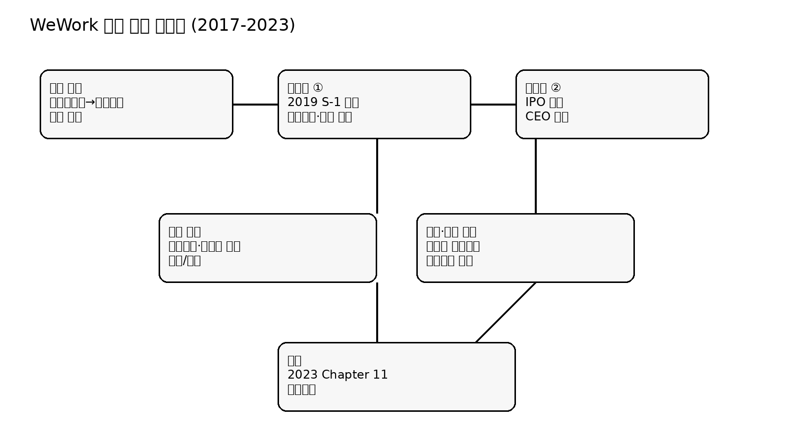 • 다른 점: (1) Theranos/FTX는 형사·규제 이슈의 강도가 훨씬 직접적이었고, WeWork는 주로 사업모델·지배구조·자본시장 신뢰의 붕괴가 중심이었다. (2) WeWork는 실물 서비스 인프라(공간 운영)가 있었고, Theranos/FTX는 각기 기술·재무 신뢰의 단층 붕괴가 더 급격했다.